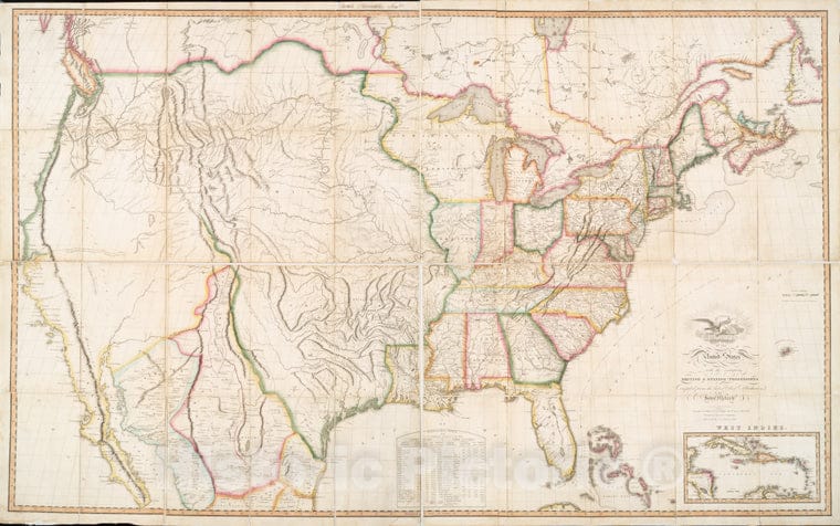 Historic 1818 Map - Map Of The United States : With The Contiguous British & Spanish Possessions - United States - United States - Maps Of North America. - Vintage Wall Art