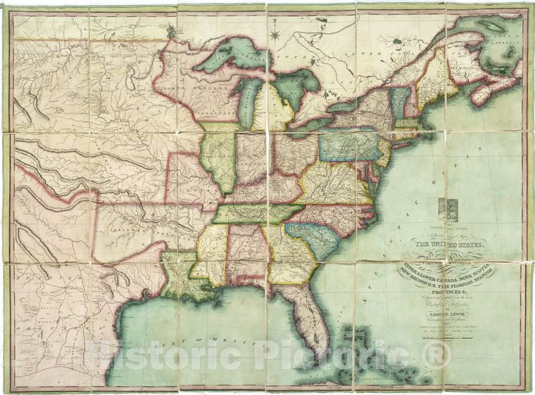 Historic 1824 Map - The Traveller'S Guide : A New And Correct Map Of The United Stat - United States - Maps Of North America.