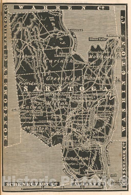 Historic 1838 Map - Saratoga County. - New York (State) - Saratoga County (N.Y.) - Atlases Of The United States - New York Atlas. - Vintage Wall Art