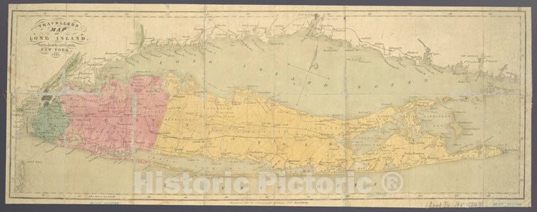 Historic 1843 Map - Traveller'S Map Of Long Island. - Long Island (N.Y.) - Maps - Long Island (N.Y.) - Maps, Touristmaps Of New York City And State - Long Island - Vintage Wall Art