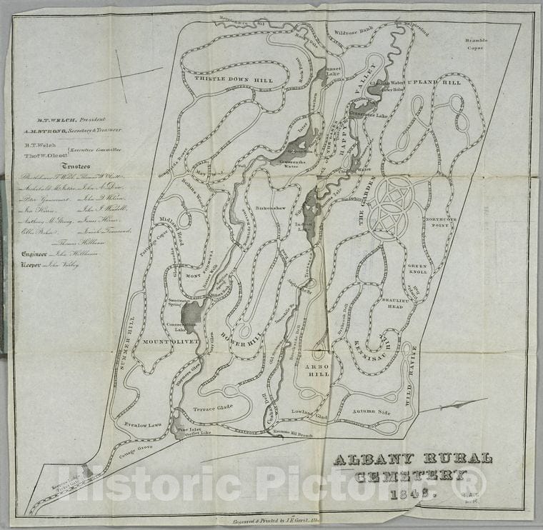 Historic 1846 Map - Albany Rural Cemetery - New York (N.Y.) - New York (State) - Albanymaps Of New York City And State - Cities And Towns, A-Z - Vintage Wall Art