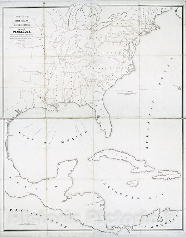 Historic 1849 Map - Skeleton Map Showing The Rail Roads Completed And In Progress In - United Statesmaps Of North America.