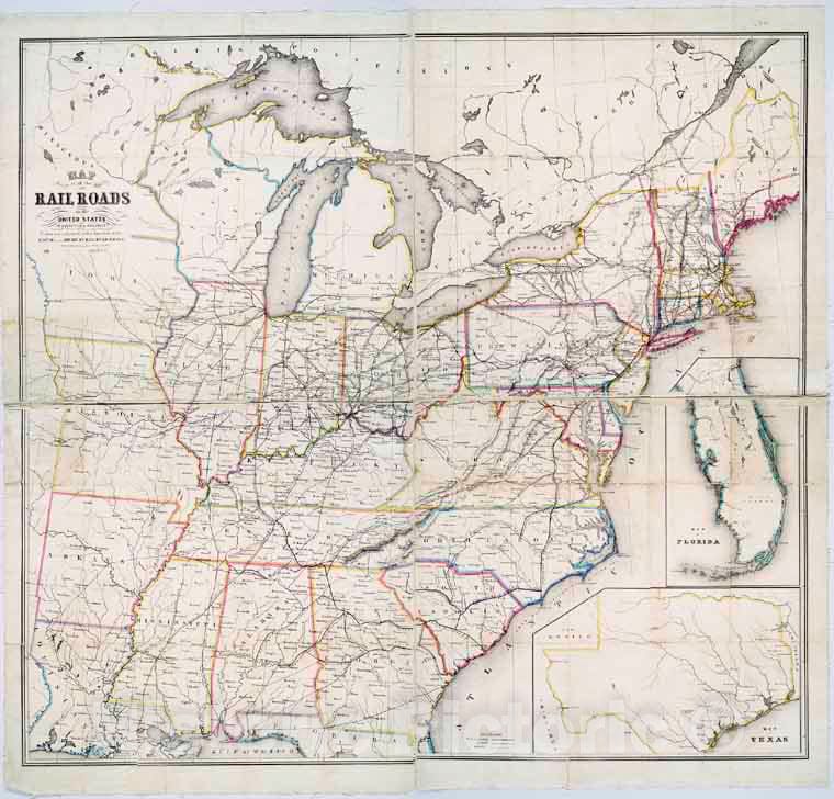 Historic 1850 Map - Map Of All The Railroads In The United States In Operation & Progress - United Statesmaps Of North America.
