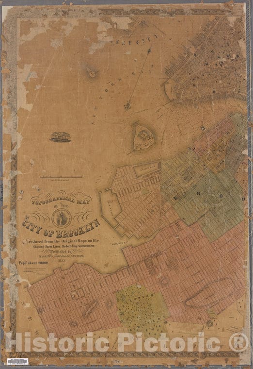 Historic 1855 Map - Topographical Map Of The City Of Brooklyn As Reduced From The Or - Brooklyn (New York, N.Y.) Maps Of New York City And State - Brooklyn - Vintage Wall Art