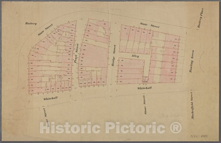 Historic 1865 Map - Part Of 1St Ward. Section Bounded By State Street, Whitehall Street, Bowling Green.Of New York City And State - Manhattan - Vintage Wall Art