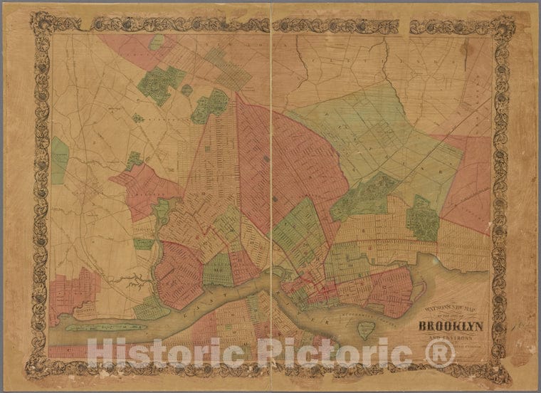 Historic 1869 Map - Watson'S New Map Of The City Of Brooklyn And Environs. - Brooklyn (New York, N.Y.) Maps Of New York City And State - Brooklyn - Vintage Wall Art
