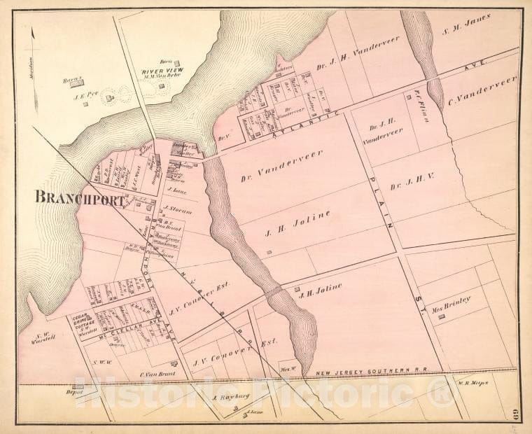 • .Historic 1873 Map - Branchport [Village] - Monmouth Couty (N.J.) - New Jersey - Monmouth County Atlases Of The United States - Atlas Of Monmouth Co, New Jersey. - Vintage Wall Art