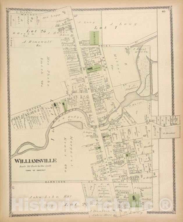 • .Historic 1880 Map - Williamsville [Village] - Erie County (N.Y.) - New York (State) - Erie County Atlases Of The United States - Atlas Of Erie County, New York. - Vintage Wall Art