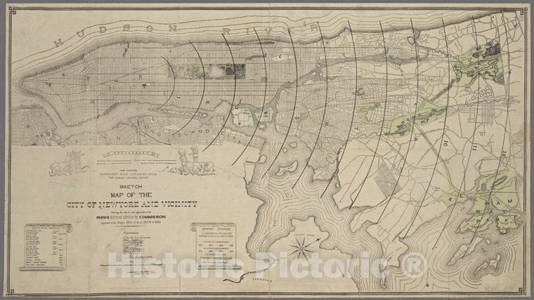Historic 1884 Map - Sketch Map Of The City Of New York & Vicinity, Showing The Sites And Approaches To The Parks.Of New York City And State - Manhattan