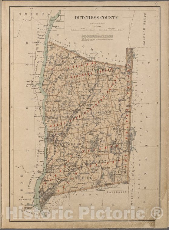 Historic 1895 Map - New York State, Plate No. 9 [Map Of Dutchess County] - Atlas Of The State Of New York
