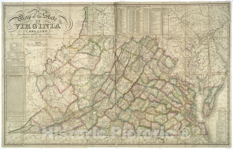 Historic Map - 1827 A Map Of The State Of Virginia Reduced From The Nine Sheet Map Of The State, In Conformity To Law - Vintage Wall Art