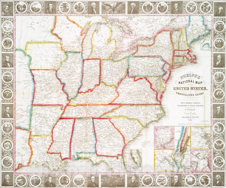 Historic Map - 1848 Phelps'S National Map Of The United States : A Travellers Guide : Embracing The Principal Rail Roads, Canals, Steam Boat & Stage Routes