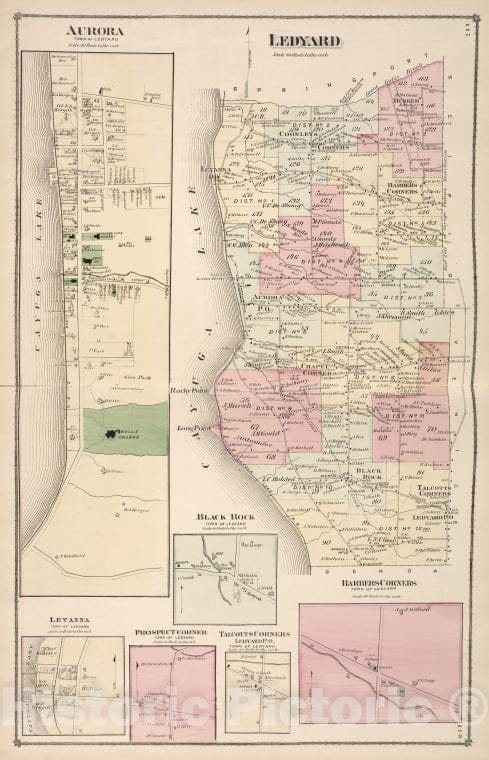 • .Historic Map - Aurora [Village]; Ledyard [Township]; Levanna [Village]; Black R - Atlases Of The United States - County Atlas Of Cayuga, New York. - Vintage Wall Art