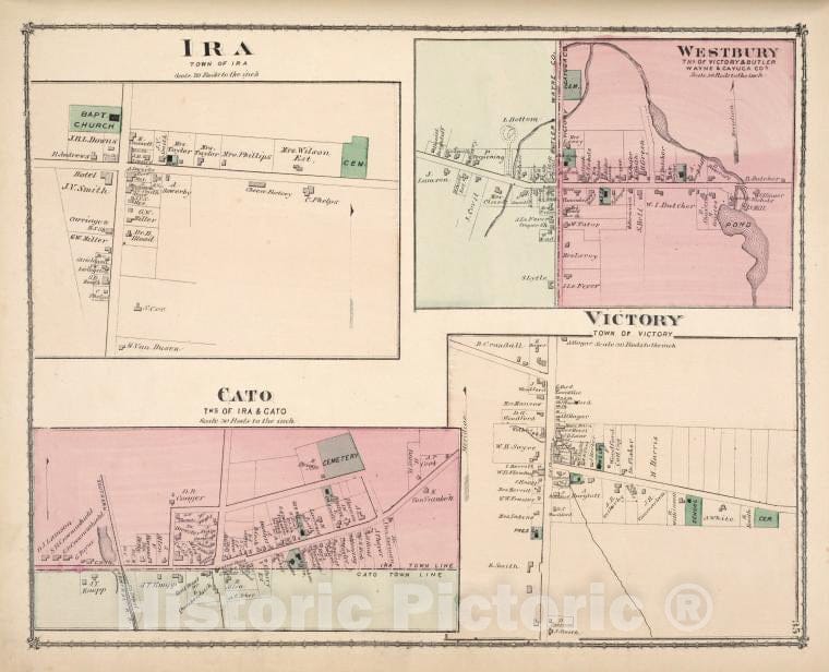 Historic Map - Ira [Village]; Cato [Village]; Westbury [Village]; Victory [Village] - Atlases Of The United States - County Atlas Of Cayuga, New York. - Vintage Wall Art
