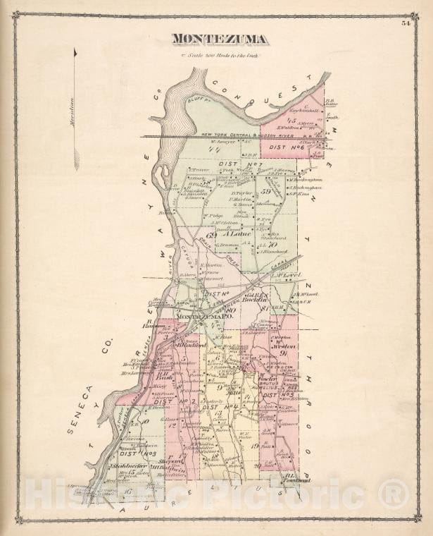 • .Historic Map - Montezuma [Township] - Atlases Of The United States - County Atlas Of Cayuga, New York. - Vintage Wall Art