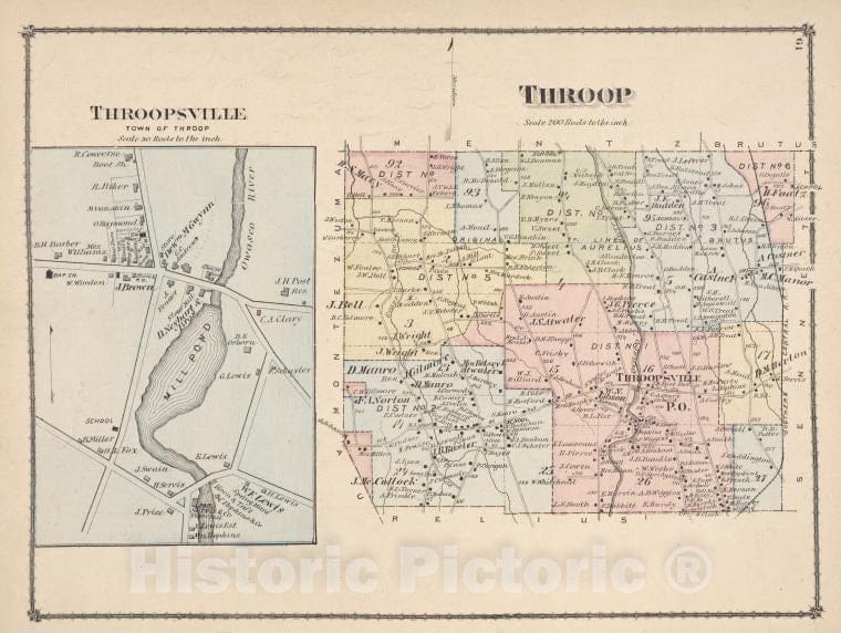 • .Historic Map - Throopsville [Village]; Throop [Township] - Atlases Of The United States - County Atlas Of Cayuga, New York. - Vintage Wall Art