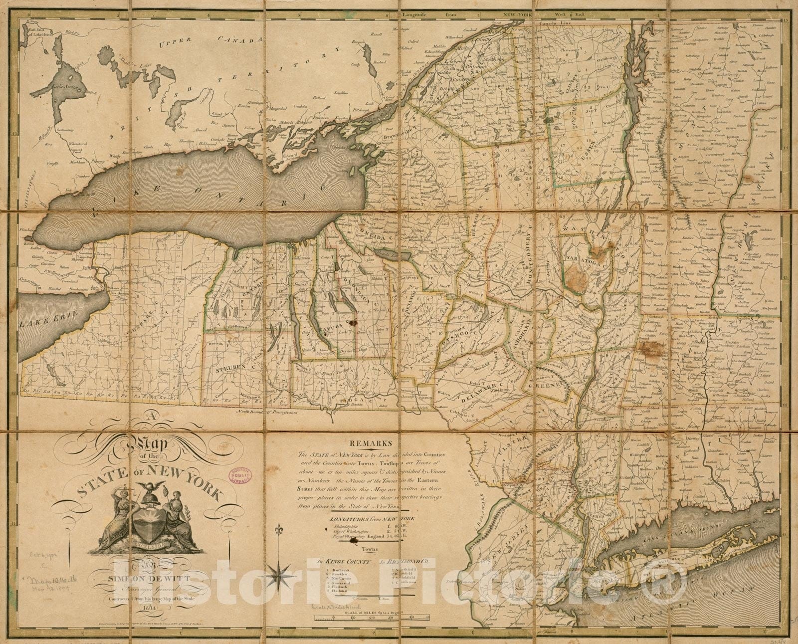 Historical Map, 1804 A map of The State of New York, Vintage Wall Art