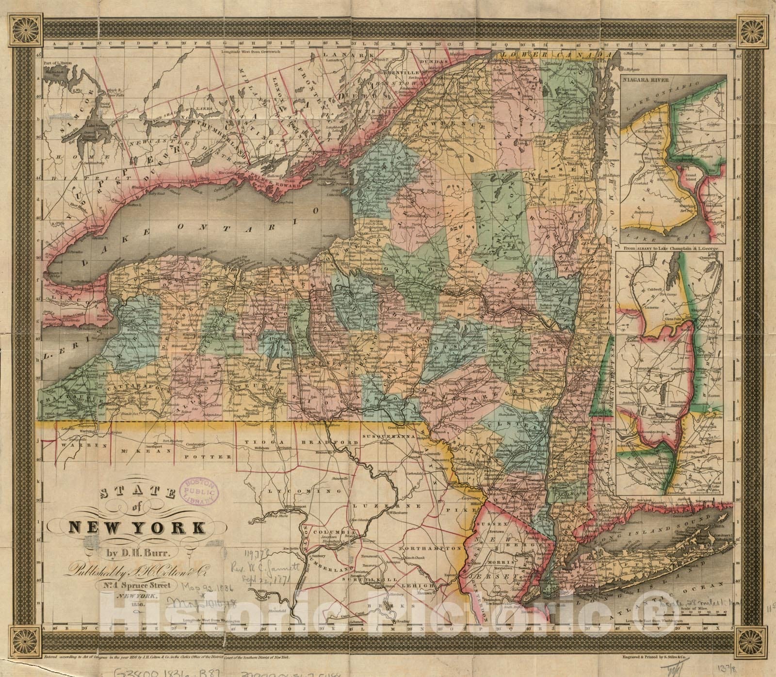 • .Historical Map, 1836 State of New York, Vintage Wall Art