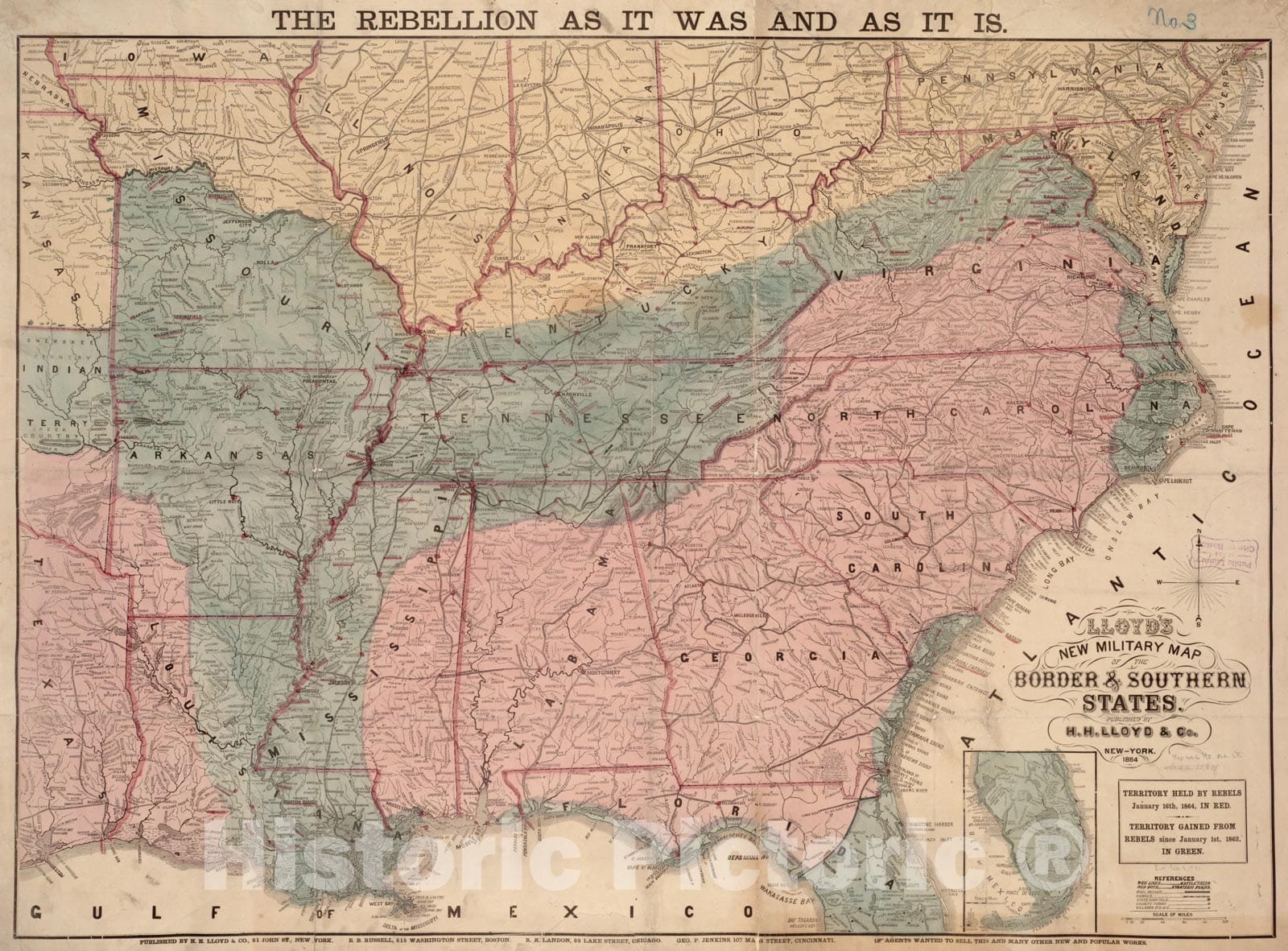 Historical Map, 1864 Lloyd's New Military map of The Border & Southern States, Vintage Wall Art