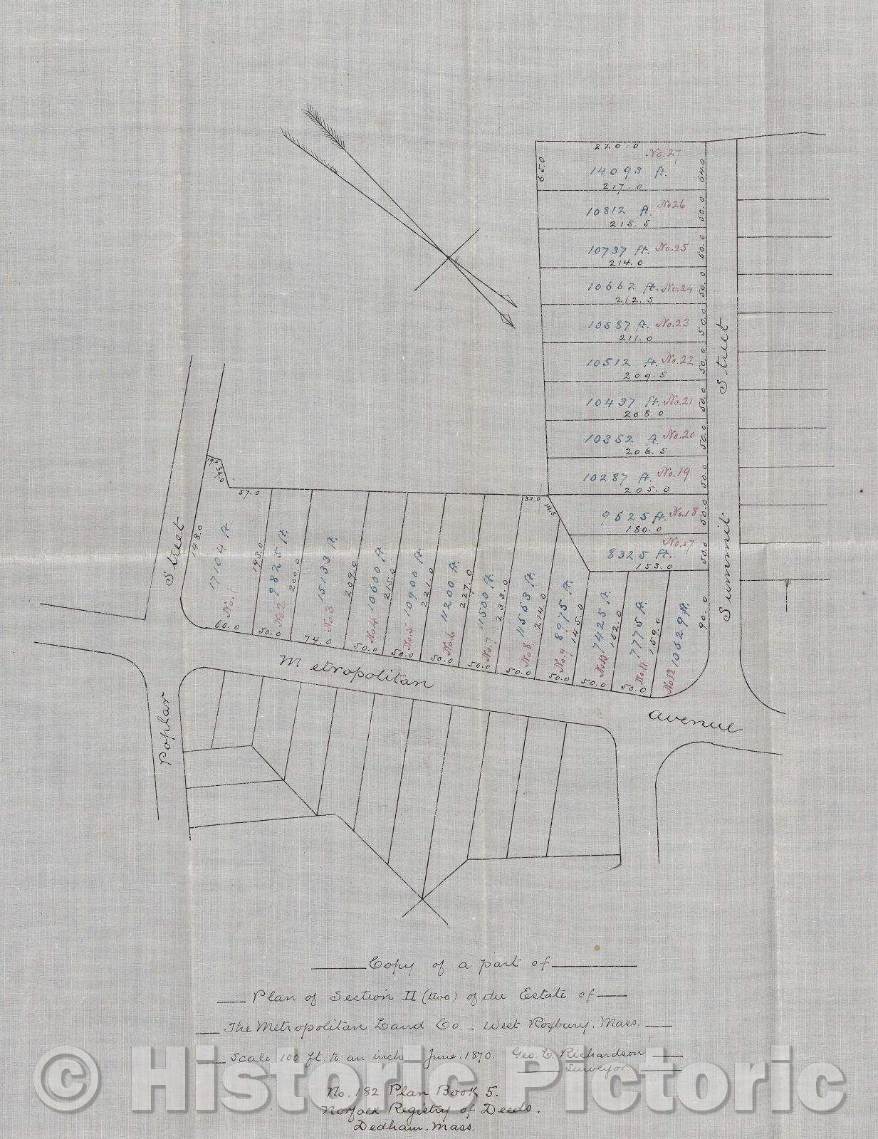 • .Historic Map : Copy of a part of plan of section II (two) of the estate of the metropolitan land co., West Roxbury, Mass., 1870 , Vintage Wall Art