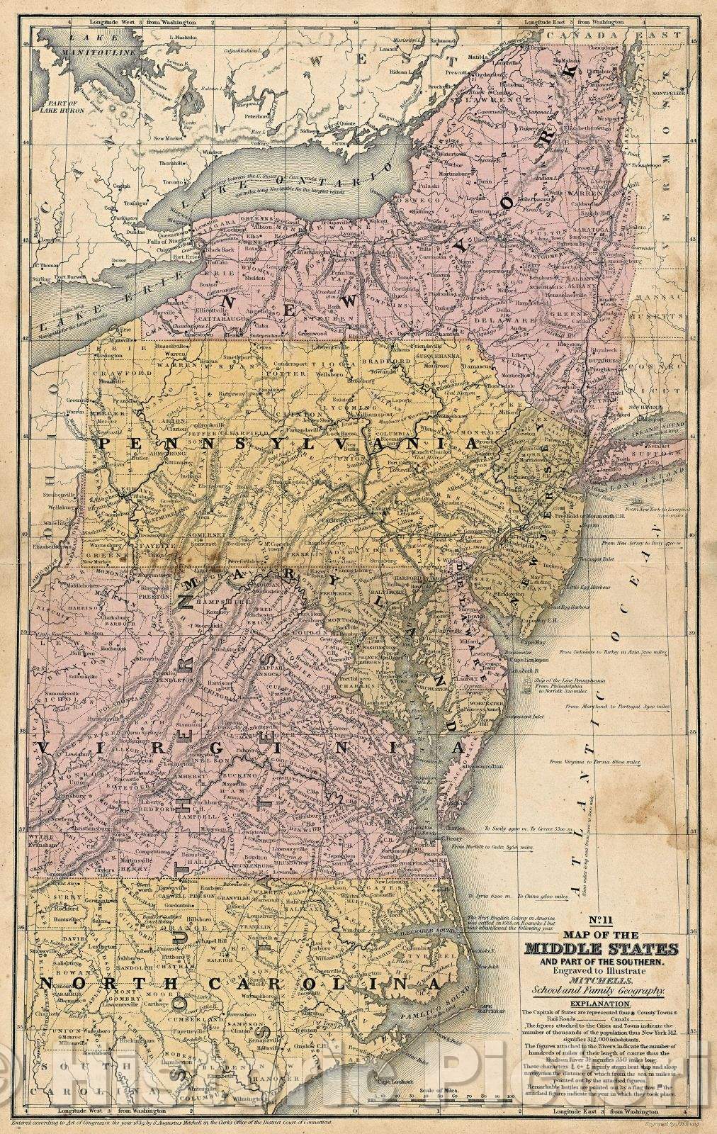 Historic Map : Map of the Middle States and Part of the Southern., 1839 , Vintage Wall Art