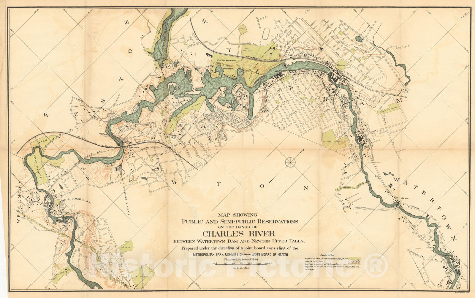 Historic Map : Newton, Newton & Waltham & Watertown & Wellesley 1896 , Nirenstein's National Preferred Real Estate Locations of Business Properties , Vintage Wall Art