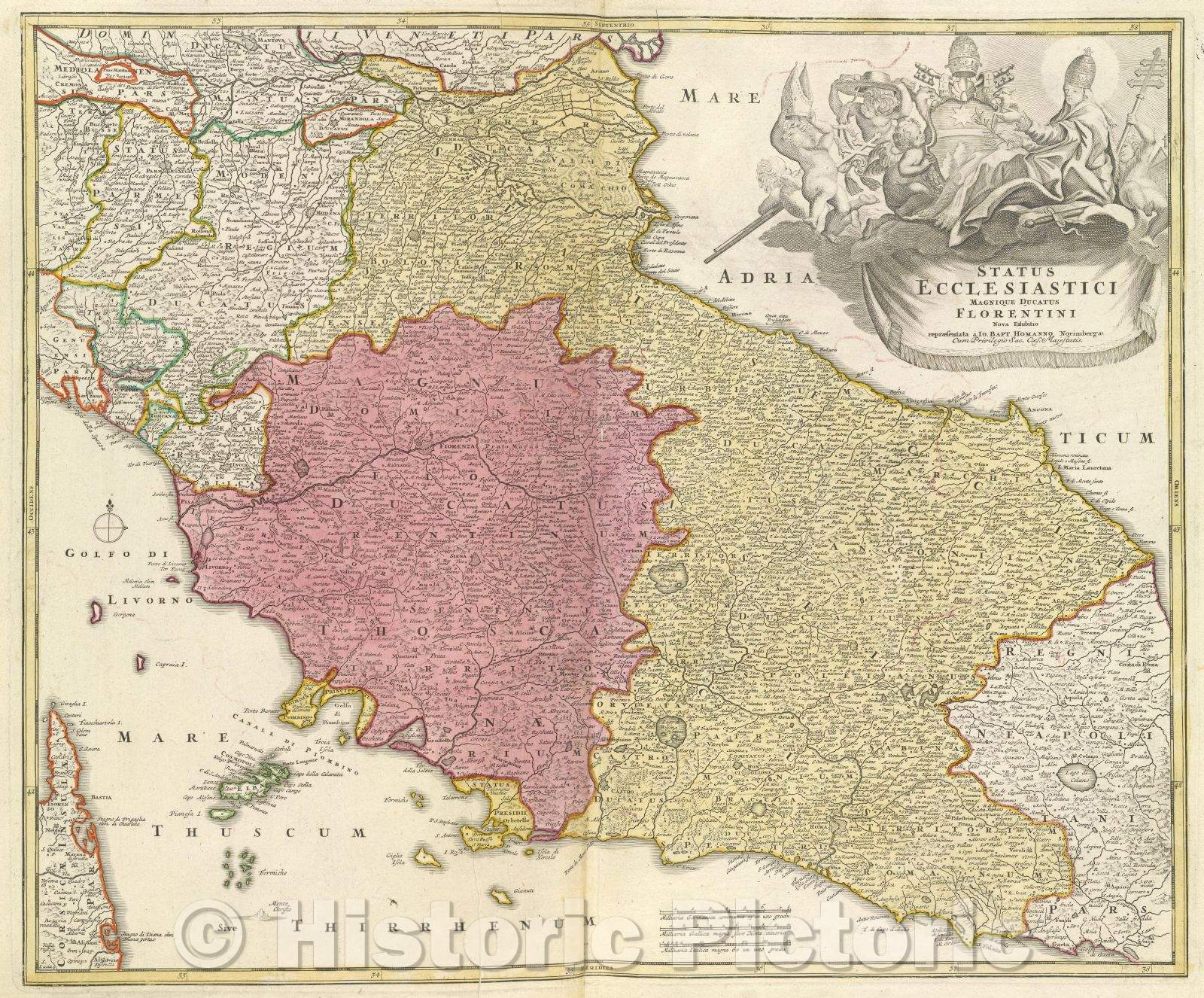 Historic Map : Status ecclesiastici magnique ducatus Florentini nova exhibitio. :: New map of the Ecclesiastical State and the great Duchy of Florence., 1716 , Vintage Wall Art