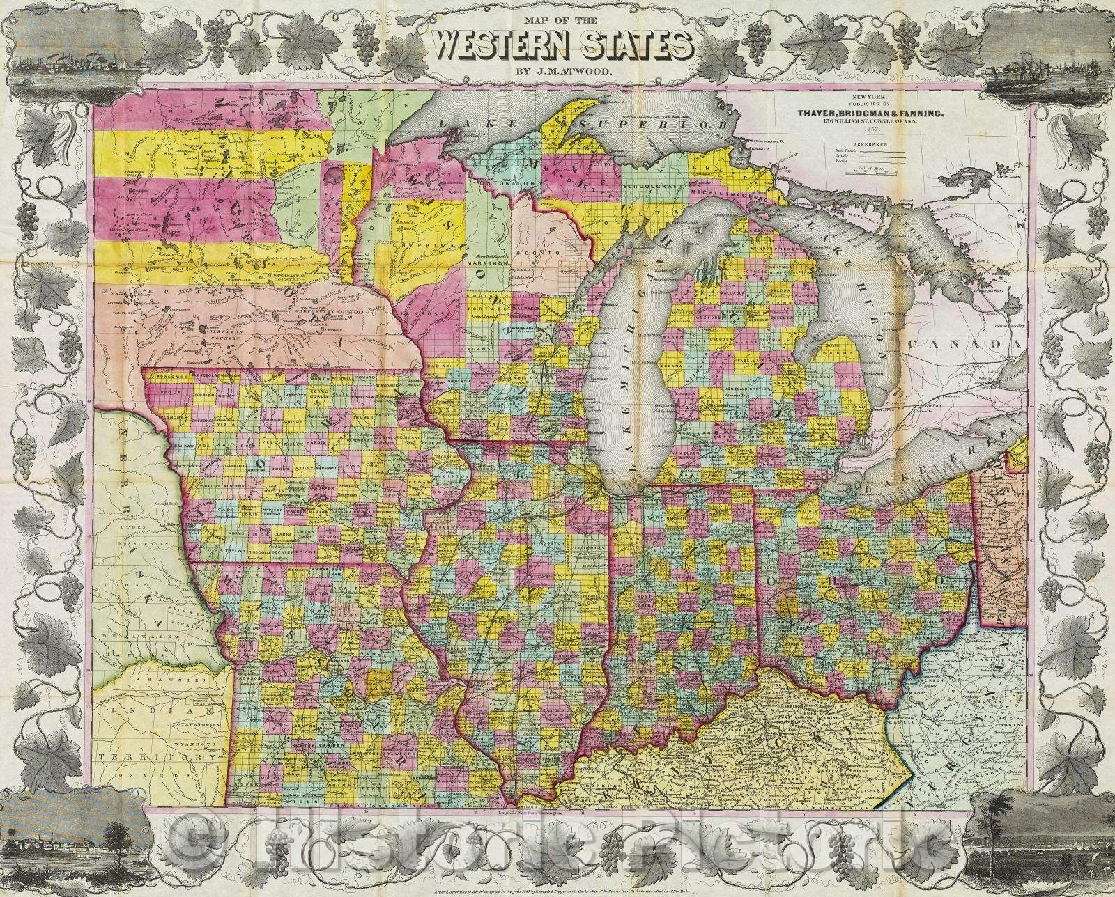 Historic Map : Map of the western states, 1853 , Vintage Wall Art