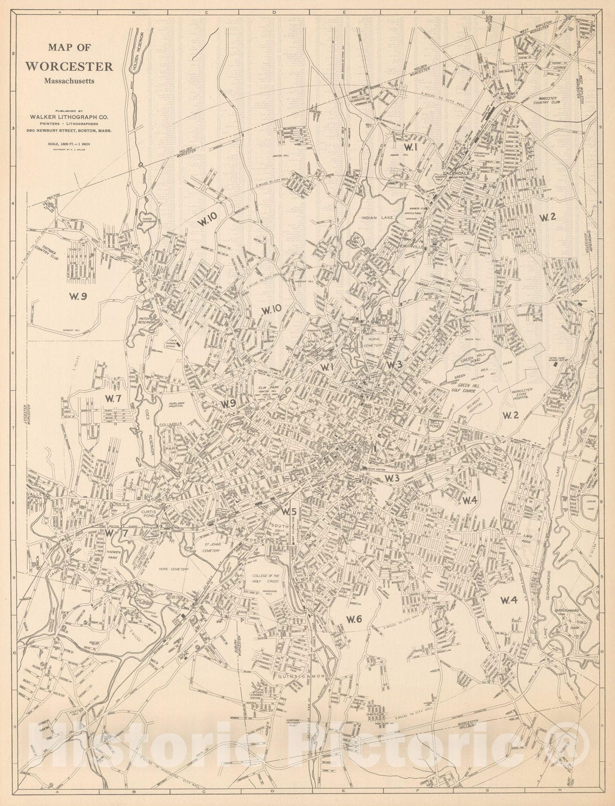 Historic Map : Worcester 1910 , Northeast U.S. State & City Maps , Vintage Wall Art