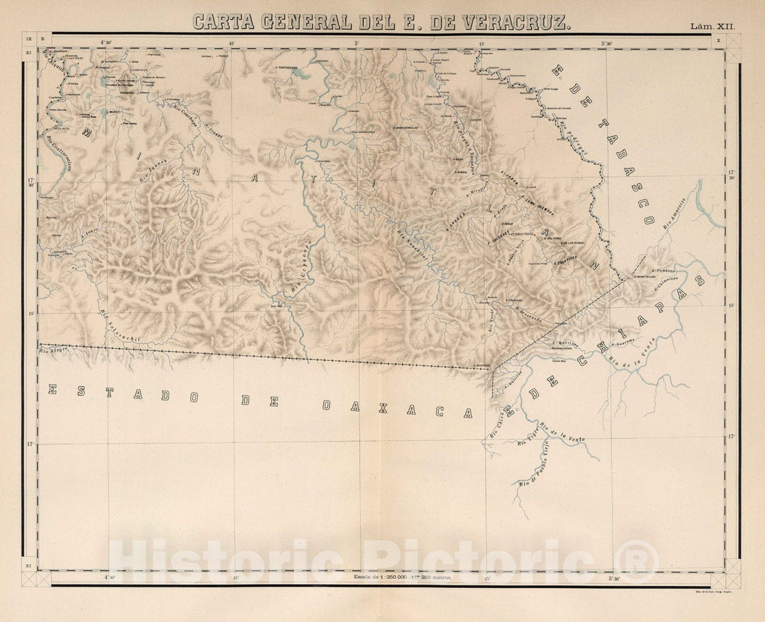 Historic Map : Veracruz (Mexico), State Atlas Map, Lam. XII. Carte General de E. de Veracruz. 1905 , Vintage Wall Art