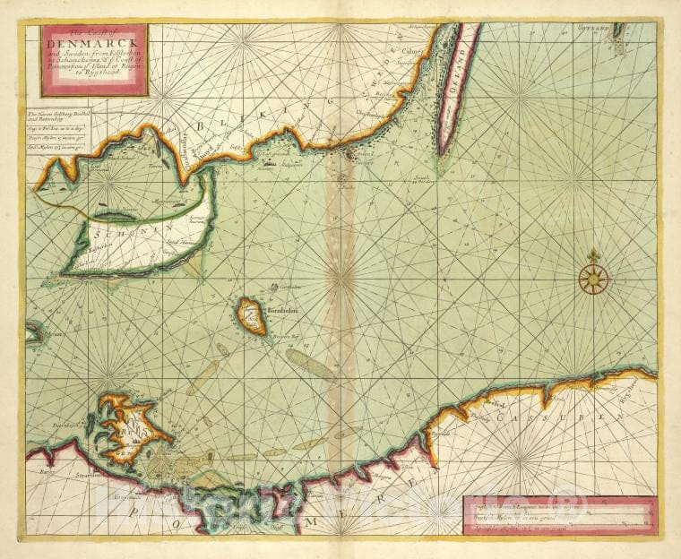 Historic 1702 Map - The Coast Of Denmarck And Sweden From Falsterbon To Schanckenes - Vintage Wall Art