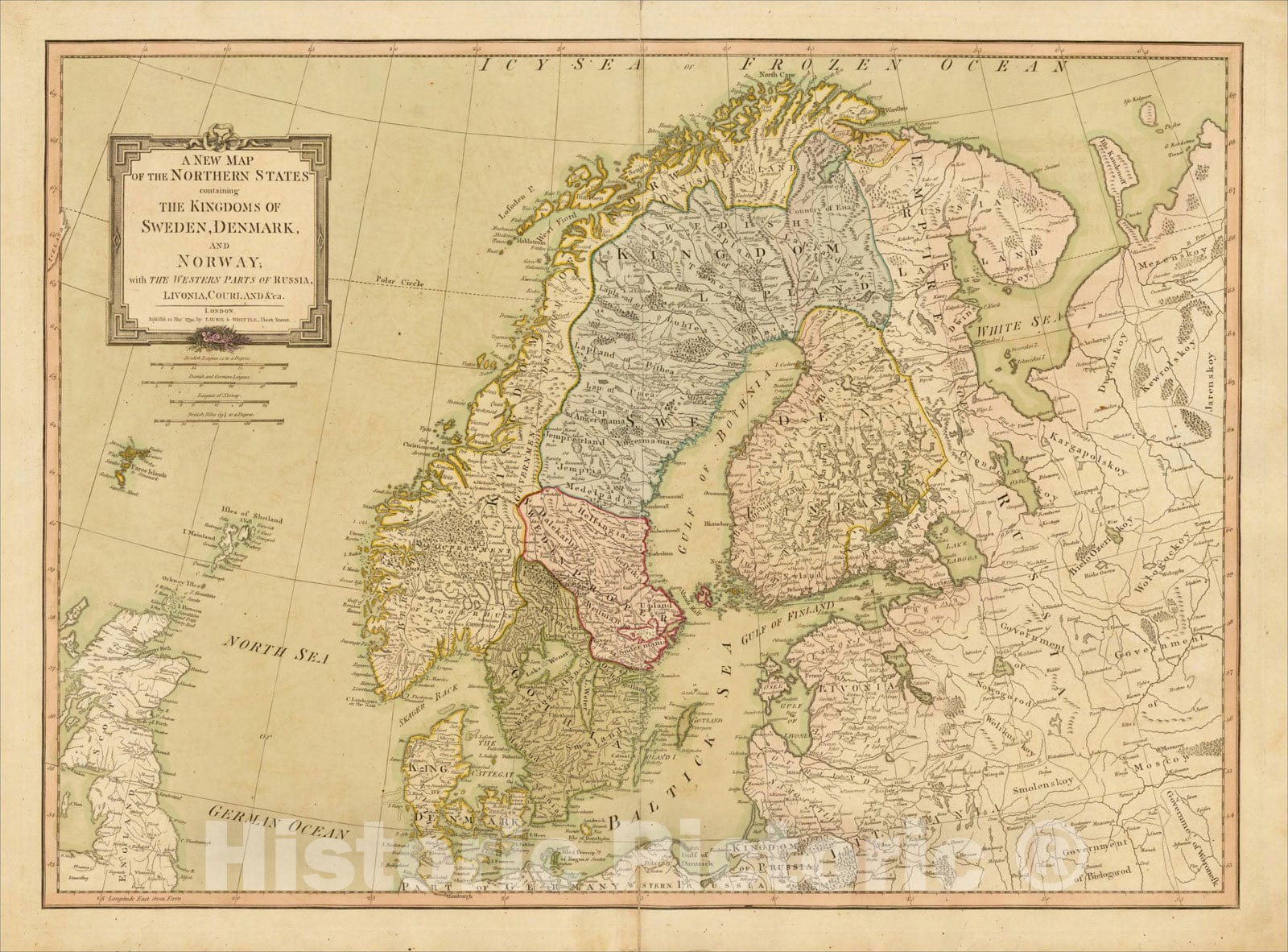 • .Historic Map : A New Map of the Northern States Containing the Kingdoms of Sweden, Denmark, and Norway, 1794, Laurie & Whittle, Vintage Wall Art