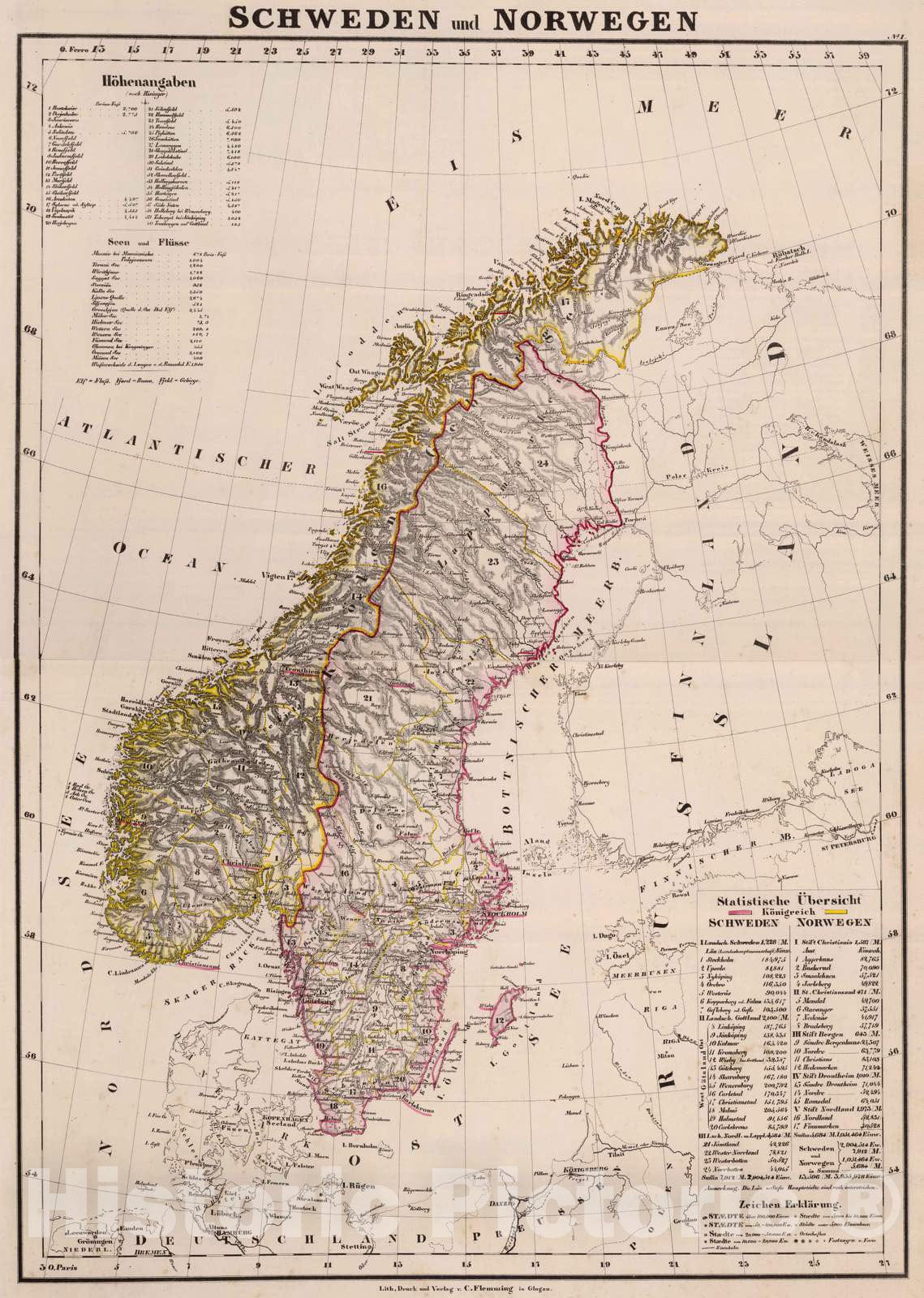 Historic Map : Norway; Sweden, 1855 Composite: Schweden, Norwegen. , Vintage Wall Art