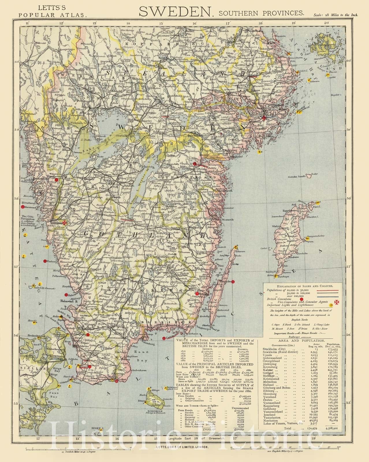 Norway; Sweden, Scandinavia 1825 Suede, Norvege, Danemark. , Vintage Wall Art