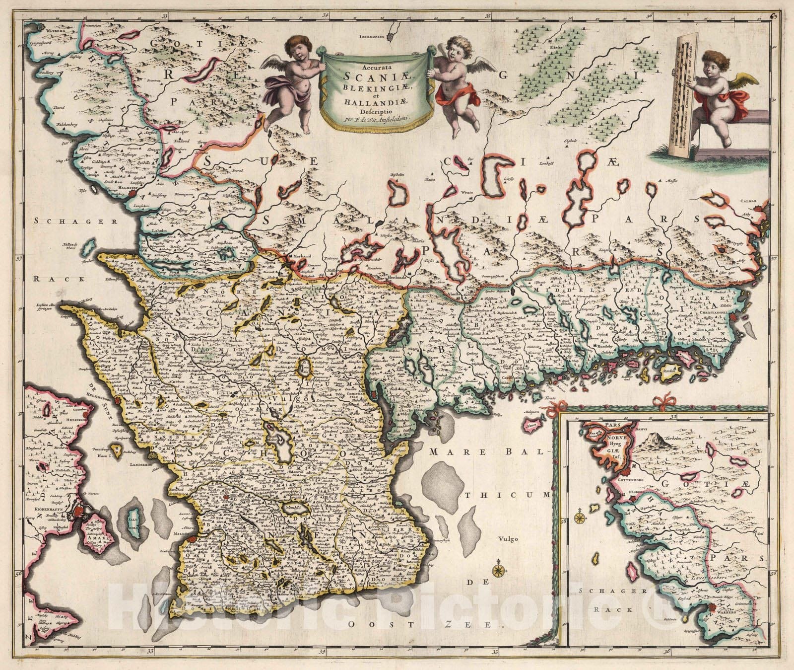 Sweden, 1682 Accurata Scaniae, Blekingiae et Hallandiae. , Vintage Wall Art