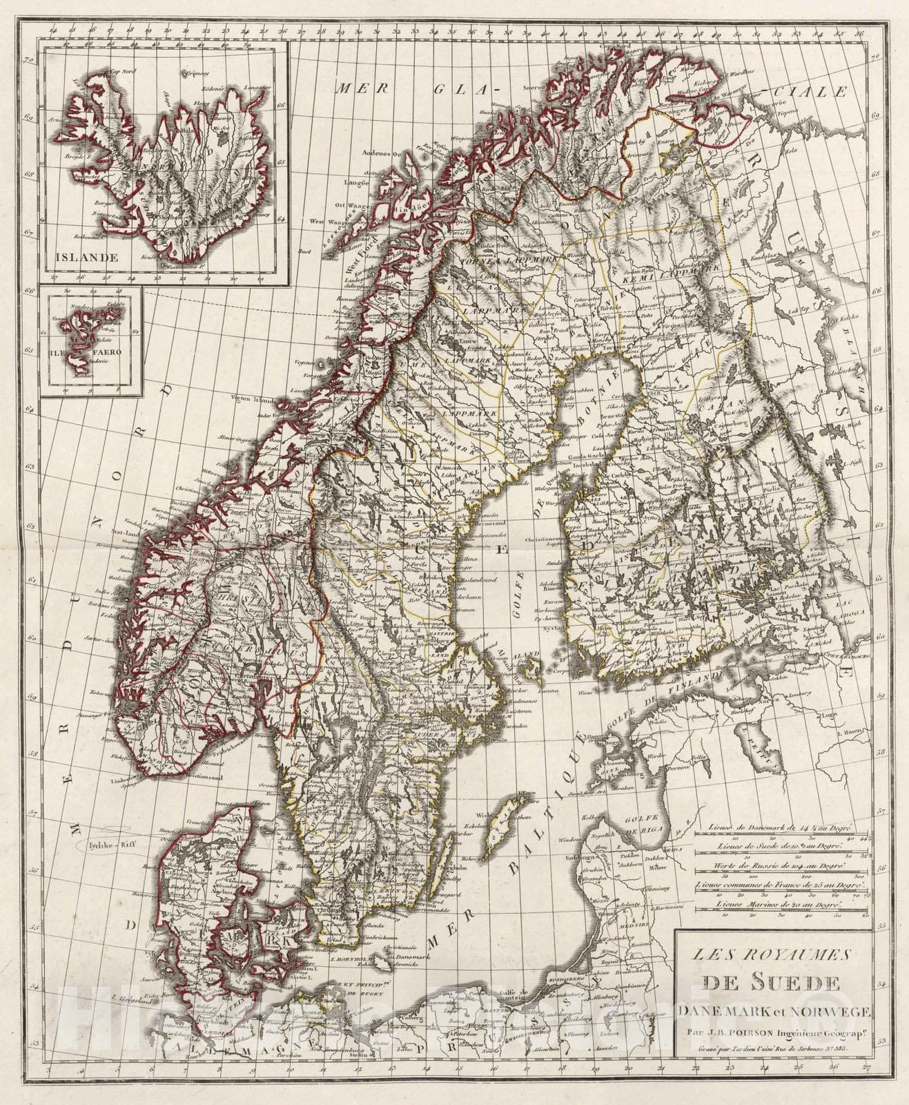 Historic Map : Sweden, 1804 X. Les Royaumes de Suede, Danemark et Norwege. , Vintage Wall Art
