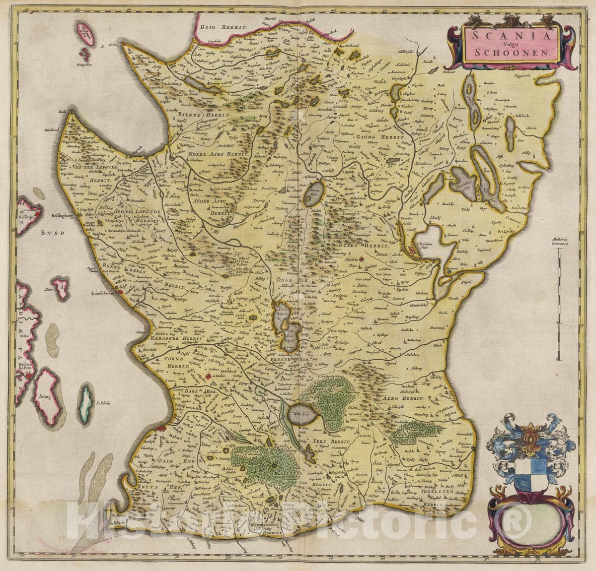 Historic Map : Sweden, Atlas Maior Sive Cosmographia Blaviana, Qua Solvm, Salvm, Coelvm, Accvratissime Describvntvr. Scania Vulgo Schoonen, 1665 Atlas , Vintage Wall Art