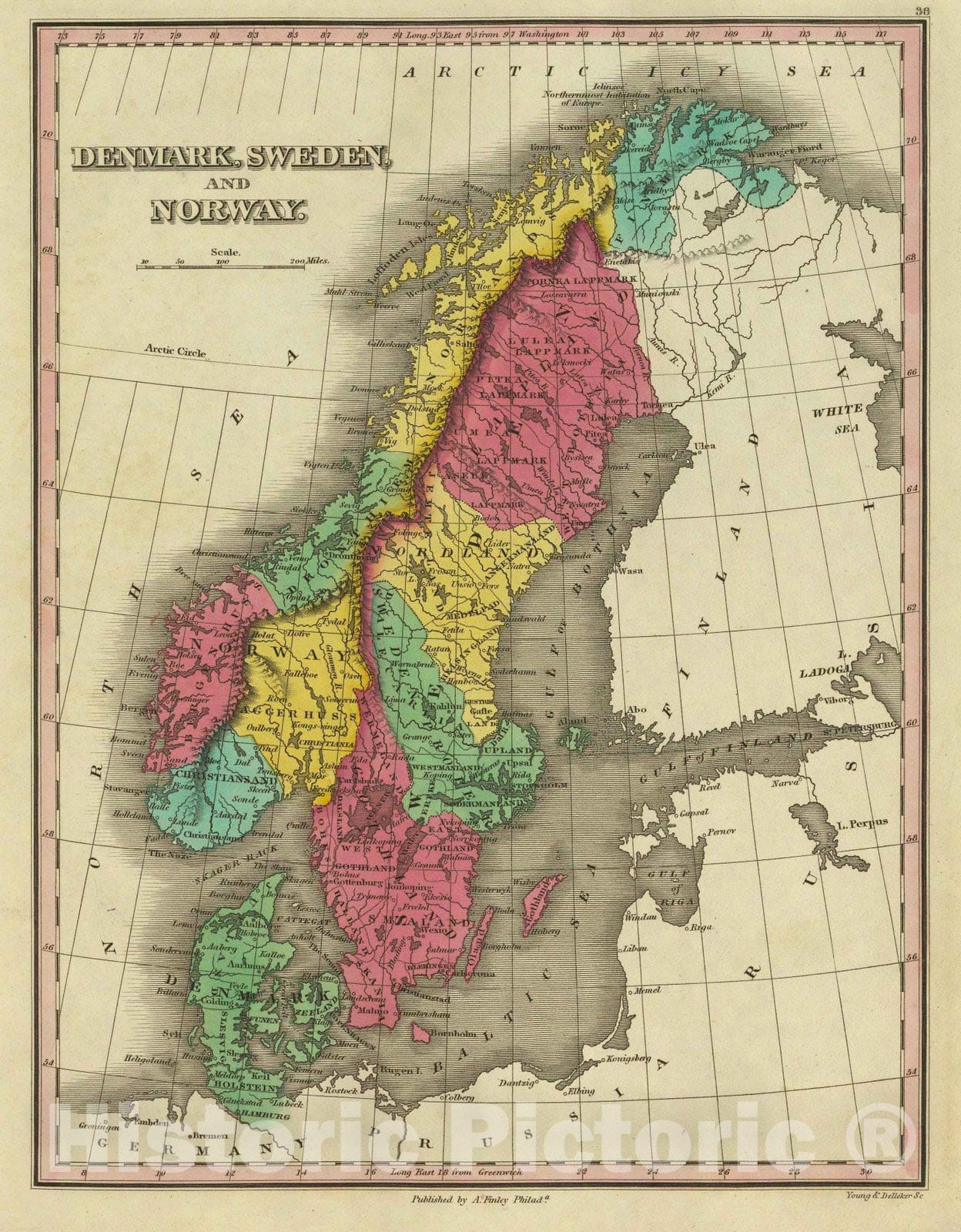 Sweden, Scandinavia Carte Suedoise Danemark, 1850 Atlas , Vintage Wall Art