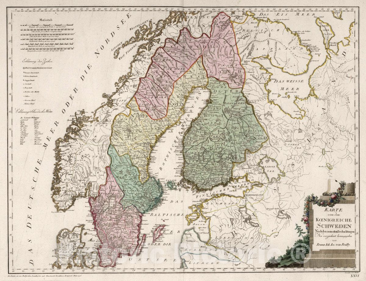 Sweden, XXVI. Karte von Koenigreiche Schweden, 1796 Atlas , Vintage Wall Art