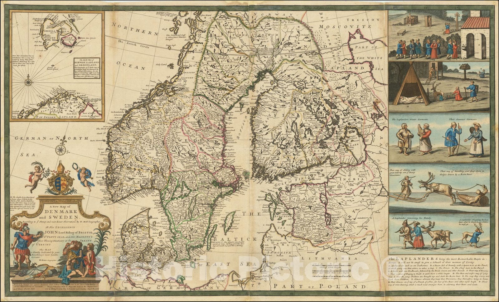 • .Historic Map : A New Denmark and Sweden.According to ye Newest & most Exact Observations...To His Excellency Lord Bishop of Bristol Ld. Privy Seal & Her Majestys Plenipotentiary, 1720, Vintage Wall Art