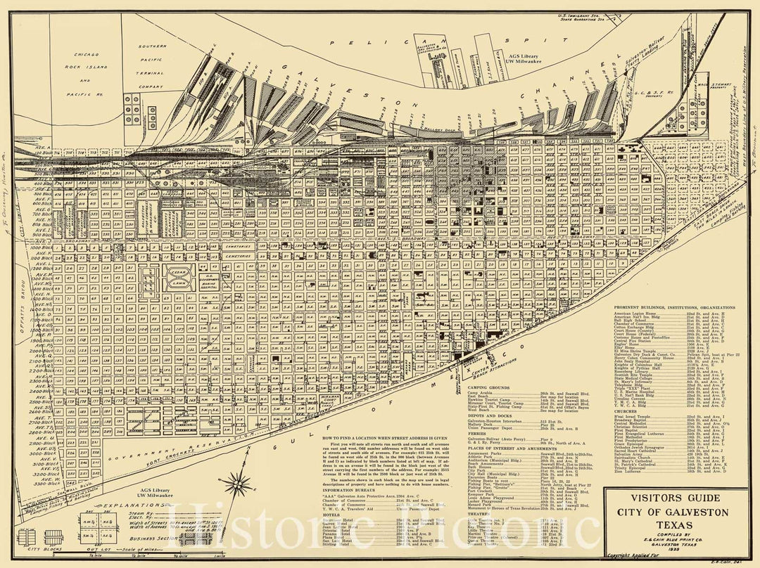 Map : Galveston Texas 1929, Visitors guide, city of Galveston, Texas , Antique Vintage Reproduction