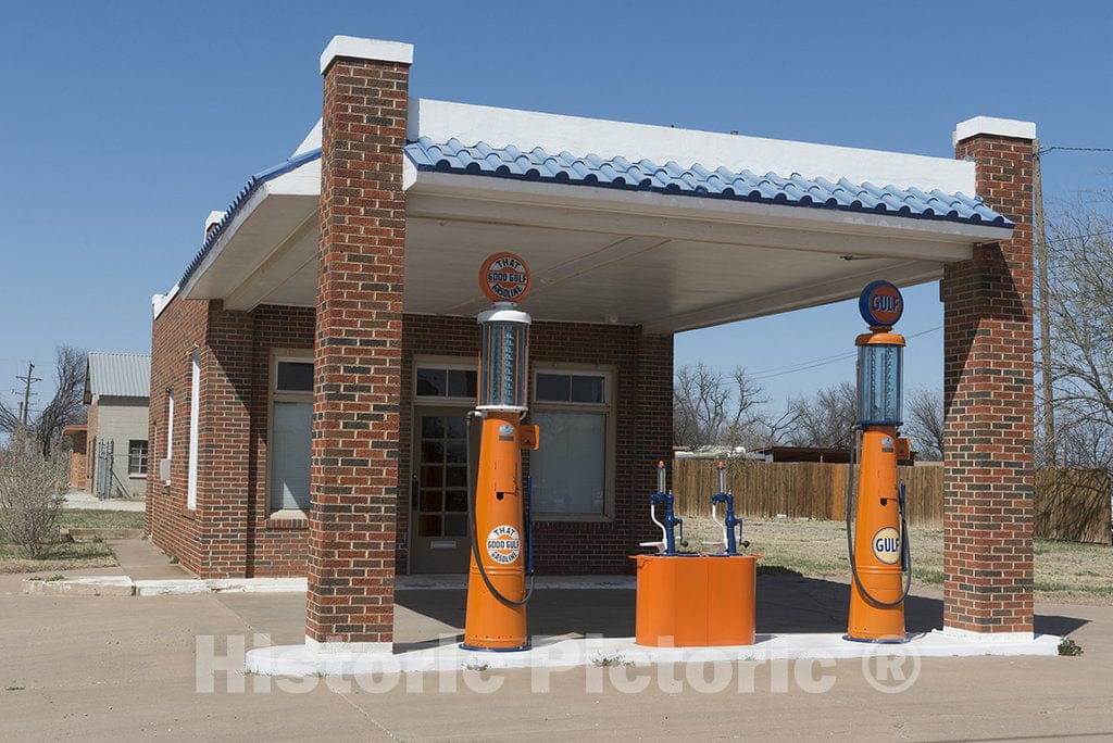 Albany, TX Photo - A Restored Gulf Service Station in Albany, Texas. The Gasoline Pumps were Gravity-Driven; The Low Pumps in The Center Island dispensed Kerosene