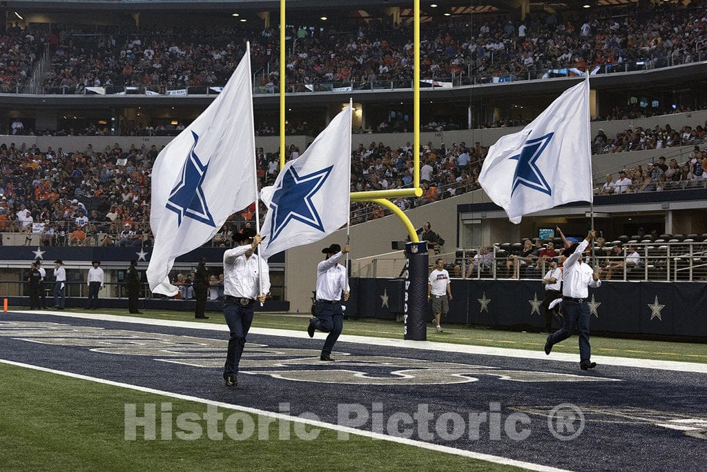 Arlington, TX Photo - Flag-bearers in cowboy hats whip up enthusiasm in the crowd with flags displaying the Dallas Cowboys' emblem at AT&T Stadium in Arlington, Texas.