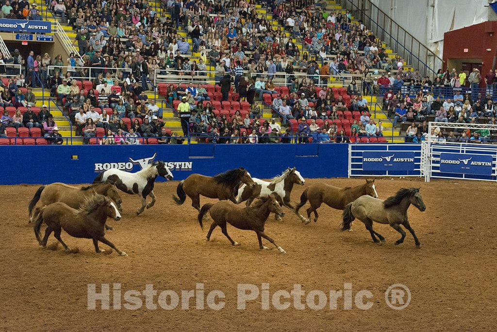 • Austin, TX Photo - Horses Run Free as Part of a Brief Program About Texas's Wild Horses at Rodeo Austin, The city's Annual Stock Show and Rodeo. Austin, Texas