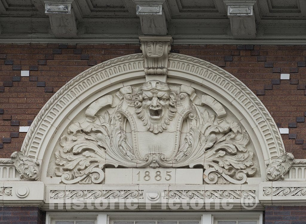 One of three architectural elements above the Paramount Theatre in downtown Austin, Texas. Two of the friezes are inscribed with the dates 1885 and 1915. Between them is a frieze with the name Joseph Nalle. The theater was built in 1915, but the 1885 date inscribed over the windows shows the date the Nalle family acquired the property. Nalle was mayor of Austin while the building was being constructed (by him; he was a builder as well as politician), but the theater was the idea of his son, Ernest. It opened on October 11, 1915.