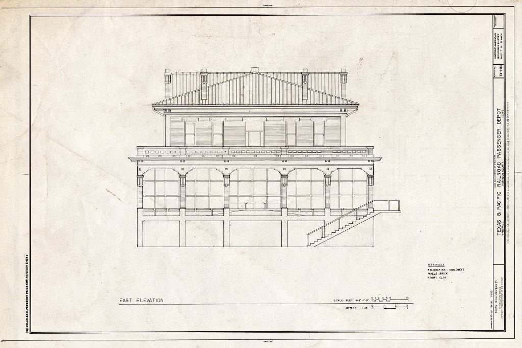 Blueprint East Elevation - Texas & Pacific Railroad Passenger Depot, 800 North Washington Street, Marshall Northeast, Harrison County, TX