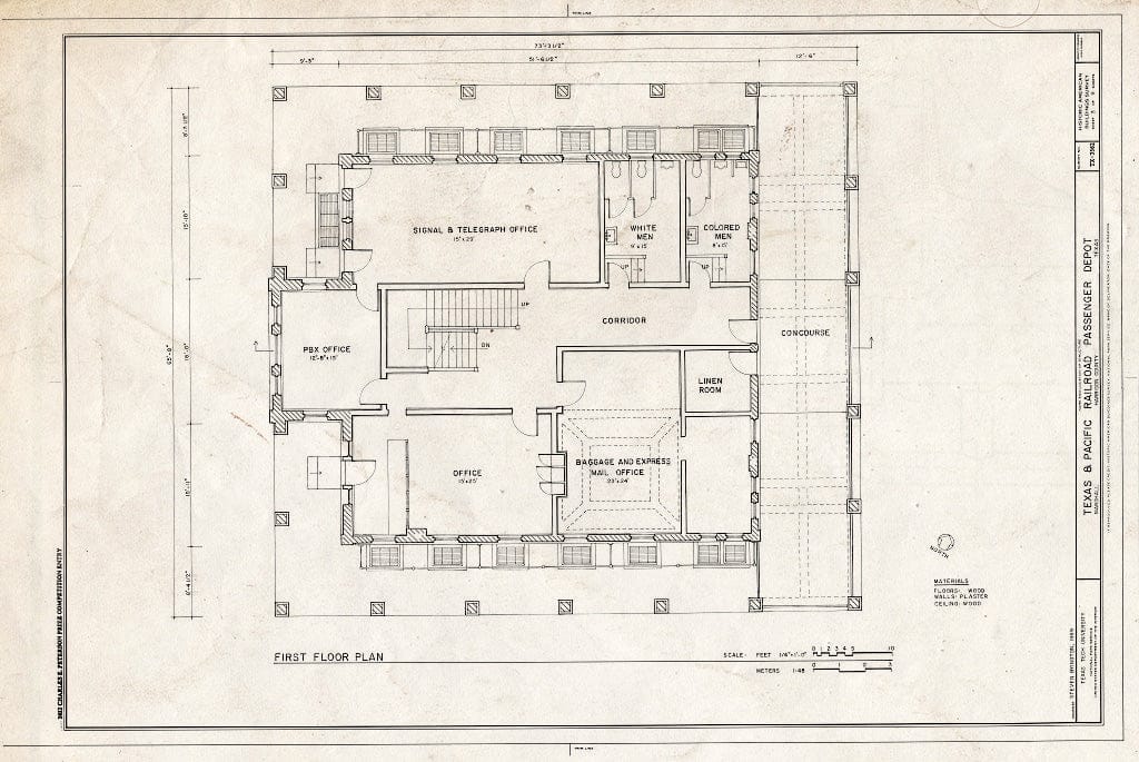 • .Blueprint First Floor Plan - Texas & Pacific Railroad Passenger Depot, 800 North Washington Street, Marshall Northeast, Harrison County, TX