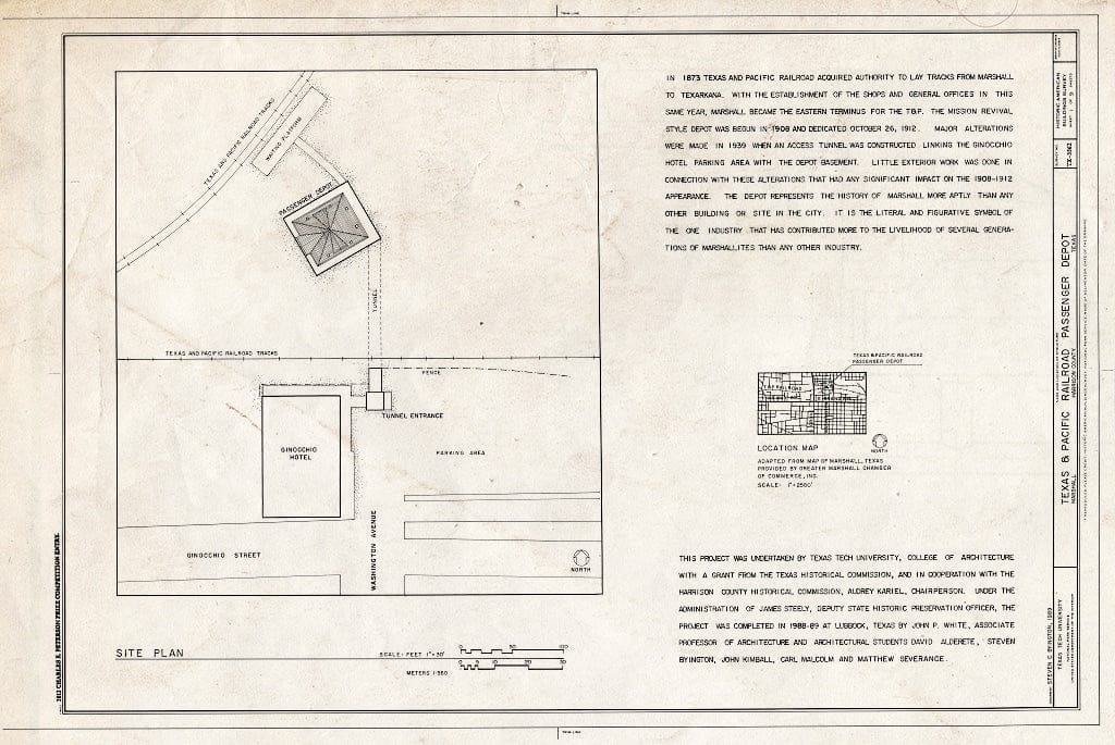 Blueprint Site Plan - Texas & Pacific Railroad Passenger Depot, 800 North Washington Street, Marshall Northeast, Harrison County, TX