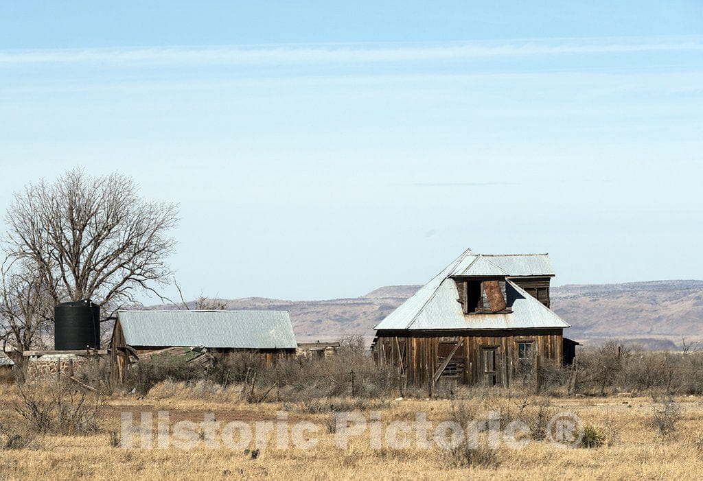 Brewster County, TX Photo - A pitched-Metal-roof Structure, Common in Rural West Texas, North of Alpine