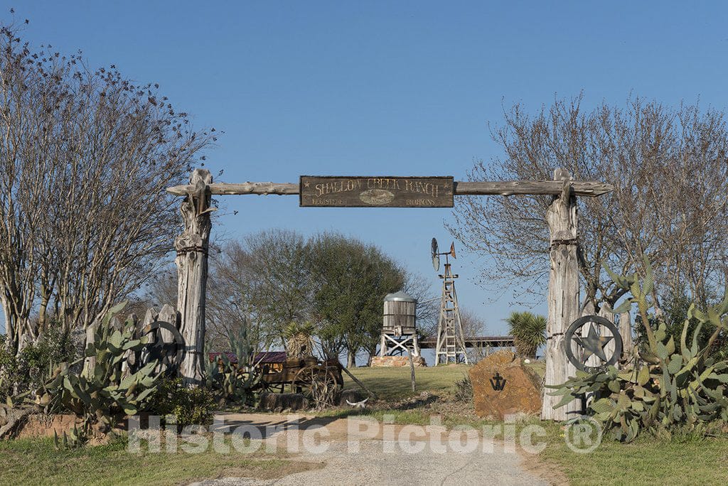 Entrance to the Shallow Creek Ranch, near the town of Caldwell in Burleson County, Texas.